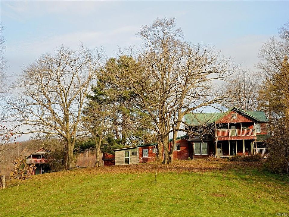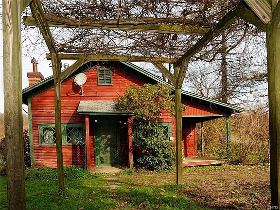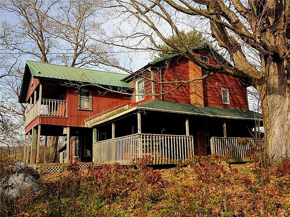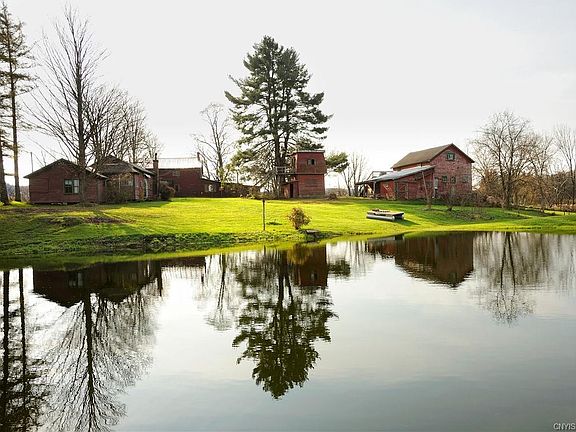 VERY PRIVATE 3.35 acre park like setting for this unique home. Located on quiet dead end road. No immediate neighbors. Property features a nice pond with fish, 2 car carriage type garage, and a two bedroom guest cottage. Walking distance to DeRuyter Lake and DeRuyter State Forest. The home is solid and livable but could definitely be improved (needs paint, some flooring, basic updating) This is a real opportunity! Taxes shown are based on a larger parcel so they should be lower once the subdivision is recorded.