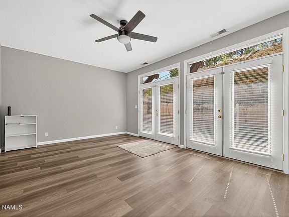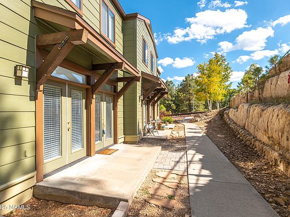 Only 2 Minutes from Campus! This is a fantastic turn-key home, on a great lot in sought after Rio Homes. Meaning, no neighbor in front of you and no neighbor on the side. Experience the beautiful natural landscape of rock and ponderosa pine trees, w/ views of the mountains and forest from the private back deck. Just off NAU Campus & only 5 minutes from downtown, Rio Homes embodies the outdoor lifestyle of Flagstaff w/ access to the Flagstaff Urban Trail System just steps from the front door. Parks, basketball courts and quiet spaces are found throughout the community. Turn Key and updated w/ a full interior repaint, new wood vinyl floors, new carpeted stairs & bedrooms, updated light fixtures, all new window coverings, new vanities in all bathrooms & new electric hot water heater, all completed only a few years ago. The exterior is completely refreshed: gutters, siding & paint. Enter into the bright living room to the quaint kitchen, w/ a high top counter & large window above the sink. The dining space next to the kitchen leads directly out to the fully fenced back deck, perfect for those Summer BBQs. The bedrooms upstairs have vaulted ceilings & a split floorplan. Every room has beautiful & private views of pine trees. The primary has stunning views of the mountains too! The monthly fees cover all exterior including the roof! This is the home you've been waiting for in stunning Flagstaff, AZ!