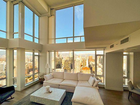 Truly unique penthouse apartment with phenomenal views and soaring 20' ceilings. This is a 3 bedroom / 3 bathroom city home on 2 levels, with 3 decks + a private rooftop deck. Every room and deck has a unique view: English Bay ocean views, north shore mountains, False Creek water, Mount Baker. On the main level you'll find an open-plan living, dining and kitchen space. Exceptionally high ceilings and windows everywhere make it feel like you are floating above the city. Down the hall is a large bedroom with view deck and walk-in closet, and a bathroom. Upstairs is another bedroom with deck (views again!) and ensuite bathroom, a 3rd bedroom /office (more views!) and a bathroom. Stairs lead to the rooftop deck with unbelievable 360 degree views. 2 parking, storage. Call for private showing!