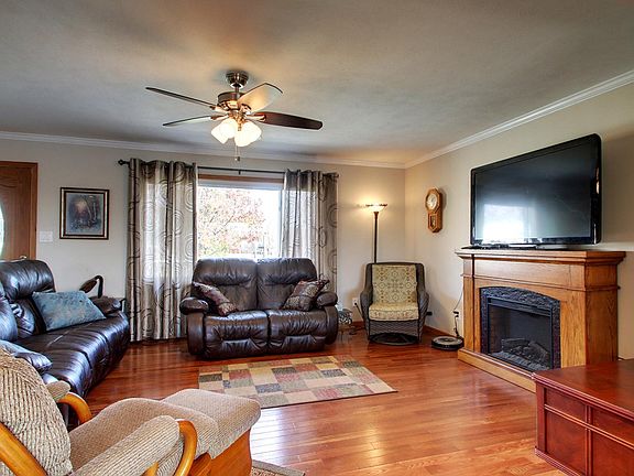 Modern open floor plan, cherry soft close kitchen cabinets with stainless steel appliances & island with bar stools, updated cherry bathroom, master bedroom with an enormous walk-in closet, crown molding, spacious deck overlooking lake, wet bar plus stone accent feature in lower level. One year home warranty with full price offer.
