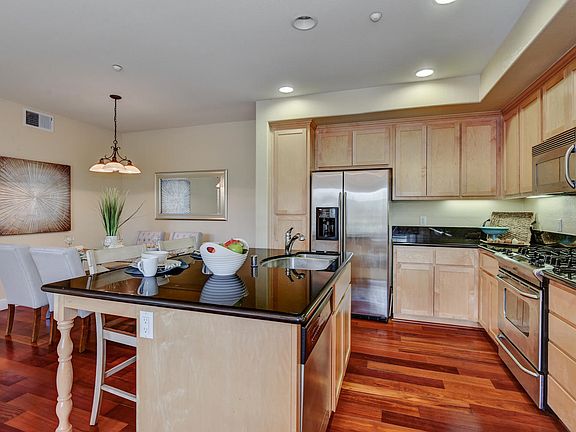 Best location in the community overlooking the park with the most sought after floorplan with living area on one level. 2 car side by side attached garage. Luxury condo built by Toll Brothers with an open and upgraded kitchen with a large island, 4 burner gas stove, built in microwave, SS refrigerator. Beautiful hardwood floors in the kitchen/dining area. Crown molding and recessed lighting in the living room with a gas fireplace. Patio overlooking the park connects to the Master bedroom. One of the few units with a 2nd private patio! Indoor full sized laundry room, Washer + Dryer stay! Spacious master bath w/ double sinks and over-size tub. Central A/C. 2yr old Water Heater. Resort style amenities with an amazing pool and BBQ area. Community gym, basketball court and park. Huge clubhouse for events. Close to BART station. Walk to Sprouts, Costco, Ranch99, Gym. Minutes to Great Mall, Challenger & Stratford, Hwy 101,880,680, 237