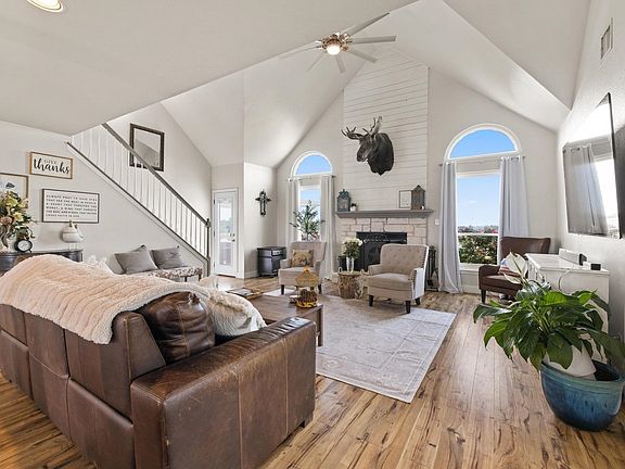 Welcome to your Hill Country escape—almost 50 acres of gently rolling land with very minimal restrictions and room to breathe. The stone-front farmhouse features a half-wraparound porch, vaulted ceilings, a cozy wood-burning fireplace, and an open layout perfect for everyday living or weekend getaways. The primary suite is conveniently located downstairs, with high ceilings, a walk-in closet, and double vanities. Upstairs offers two additional bedrooms, a full bath, and a loft-style second living area overlooking the main level. Outdoors, you'll find two fenced pastures (one with a livestock shelter), an above-ground pool, hot tub, and two seasonal ponds. The land is seeded with pasture mix, quail & turkey mix, and oats—ideal for grazing or attracting wildlife. Additional highlights include Western Broadband internet access, a 3-car detached garage, climate-controlled well shed with RV hookup, and a slab with capped utilities for future builds, workshops, or expansion. This property is ready for your vision—whether you're dreaming of homesteading, a small ranch, or simply slowing down and living wide open.