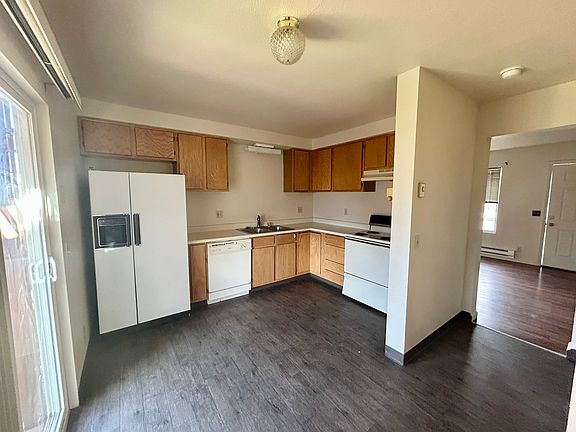 This well-maintained two-story townhouse offers 2 bedrooms, 1.5 bathrooms, and approximately 864 square feet of comfortable living space. Perfect for anyone looking for a low-maintenance home with functional amenities and outdoor space. The main level features a cozy living area, kitchen, and a convenient half bath, while both bedrooms and full bathrooms are located upstairs for added privacy. The kitchen comes equipped with a refrigerator, dishwasher, and washer/dryer for your convenience. Electric baseboard heating keeps things warm in the cooler months.