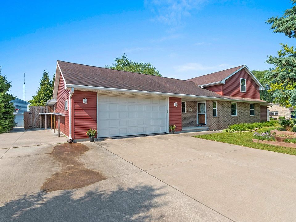 You won’t want to miss this beautiful spacious home with several unique spaces for additional living space. The heart of this home is undoubtedly the beautifully remodeled kitchen. Thoughtfully designed with the latest trends, features a large pantry, ensuring ample storage for groceries and kitchen essentials, making meal preparations a snap. Three main bedrooms, 2.5 baths with large living room with vaulted ceiling and fireplace. Two sets of patio doors lead to patio areas for outdoor living. The Lower level is a walk out style home with bar area, workout and Recreation space. The property has a Massive garage and additional storage garage for more toys.