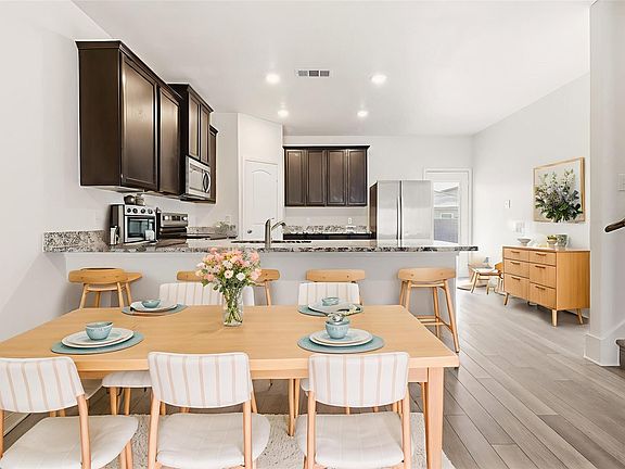 Spacious and beautifully designed! This inviting 2-story home features 5 bedrooms, 2.5 bathrooms, and a thoughtful floor plan with the primary suite conveniently located on the main level. The kitchen offers a bar seating area, pantry, stainless steel appliances, and accent lighting, perfect for everyday living or entertaining. Enjoy the open living spaces and a loft upstairs that provides extra room for work or play. The primary suite includes a double vanity and a large walk-in closet, while the secondary bath also features a double vanity for added convenience. Relax outdoors on the front or back porch, overlooking a spacious, wood-fenced backyard. Complete with a 2-car garage, this home combines comfort, style, and function — ready to welcome you home!