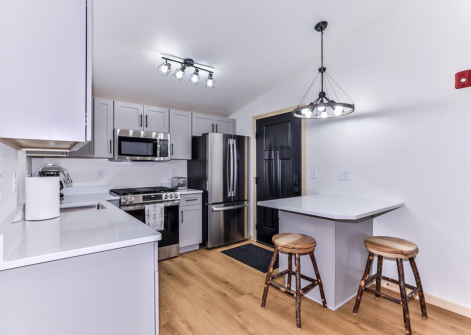 This second-floor unit sits right on Brandy Lake and offers a perfect mix of lakeside relaxation and modern comfort. Just minutes from downtown Minocqua, you'll be close to shopping, dining, and Northwoods charm. It features 2 bedrooms, 1 bathroom, a full kitchen, and modern furnishings. Large windows in the living room provide cozy lake views and a great place to unwind after a day on the water.