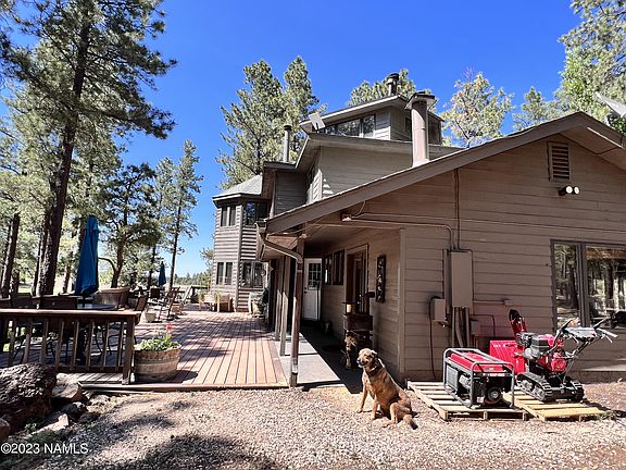 Rare 10 acre horse property in the Spring Valley of Parks, AZ with Frank Lloyd Wright style main home and two other homes, too. Built by the famous Wrigley Family in 1990, the home features a huge wrap around deck that from high above overlooks 3 & 4 pole, welded pasture fencing with cemented posts! NO BARBED WIRE pasture fencing! Two fully segmented pastures with interior access gate including a 16'x32' Isolation Corral*, additional 16' x 32' Corral* with 12' x 16' 2-sided and metal roofed, sun, rain and snow shelter*, and 12' gate access* in each pasture. 40'x40' barn with attached 20'x40' corral* and indoor barn stall. Running water at the pasture fence along with electricity for water tank heater in winter. NO TRAILERING REQUIRED to go riding. Just saddle up and go to Mt. Sitgreaves Spring Valley Knolls, or Mt. Kendrick! Hundreds and hundreds of miles of National Forest riding right here. (Entire property is perimeter fenced.**) The Wrigley Ranch is a 3-level property with houses high above Spring Valley Wash, overlooking the Spring Valley from the pine-forested heights. Local hay and feed and local dining at the Mustang River Grille only 5-10 mins away! ONLY 20-25 mins to Flagstaff or Williams for shopping and major hardware stores. ONLY 40 minutes to Arizona Snowbowl downhill skiing and you can ski in/ski out right from your front door and get on the Spring Valley Cross Country ski trail that winds through the foothills of Mt. Sitgreaves. Structures include 2-1/2 story, Main Home (3500 sq ft*), Guest Cottage (700 sq ft*) and Guest Home (2200 sq ft*), log-cabin style Chicken Coop & huge covered and fenced aviary, and 15'x20' Greenhouse. Currently, Guest Cottage and Guest Home are short-term rentals with high occupancy rates generating DOCUMENTED INCOME of approximately one hundred thousand dollars per year for 5-7 years with future bookings already reserved! Guest Home and Guest Cottage may come almost fully furnished with acceptable offer. That means you'll do nothing to have instant income if you want it! Guest Home and Guest Cottage may come almost fully furnished with acceptable offer. That means you'll do nothing to have instant income if you want it!