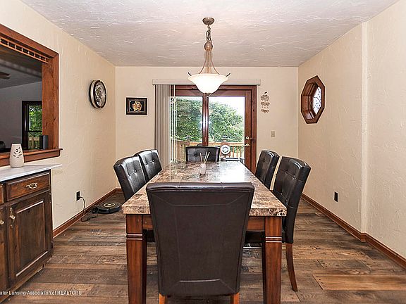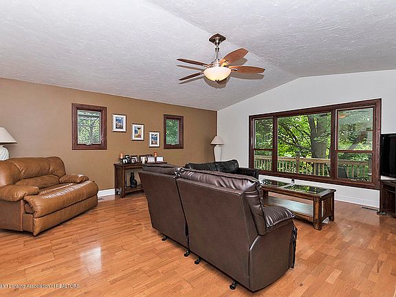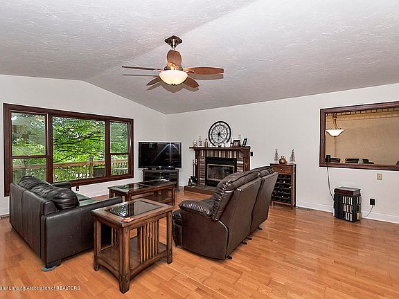 Beautiful open space with amazing views, private setting and updates galore! Through the entry, the Great Room immediately catches your attention with soaring ceilings, large windows and wood burning fireplace. The kitchen features granite counter tops, stainless steel (newer) appliances, indoor grill and wonderful brick detail. Beautiful hardwood floors stretch from the kitchen into the dining room which boasts a glass slider that connects to the newer deck which spans nearly the entire rear of the home. A spacious, 1st floor master suite has a private entry to the rear deck with 2 entertaining spaces and amazing views, private full bath with updated tile shower and vanity. Upstairs enjoy a full bath and 2 large bedrooms, both with roomy closets. Relax or entertain in the lower level with spacious rec room featuring heated tile, raw wood, exposed brick and tile flooring. The wet bar in perfectly situated and the wood stove can heat the room nicely and is adorable in the space