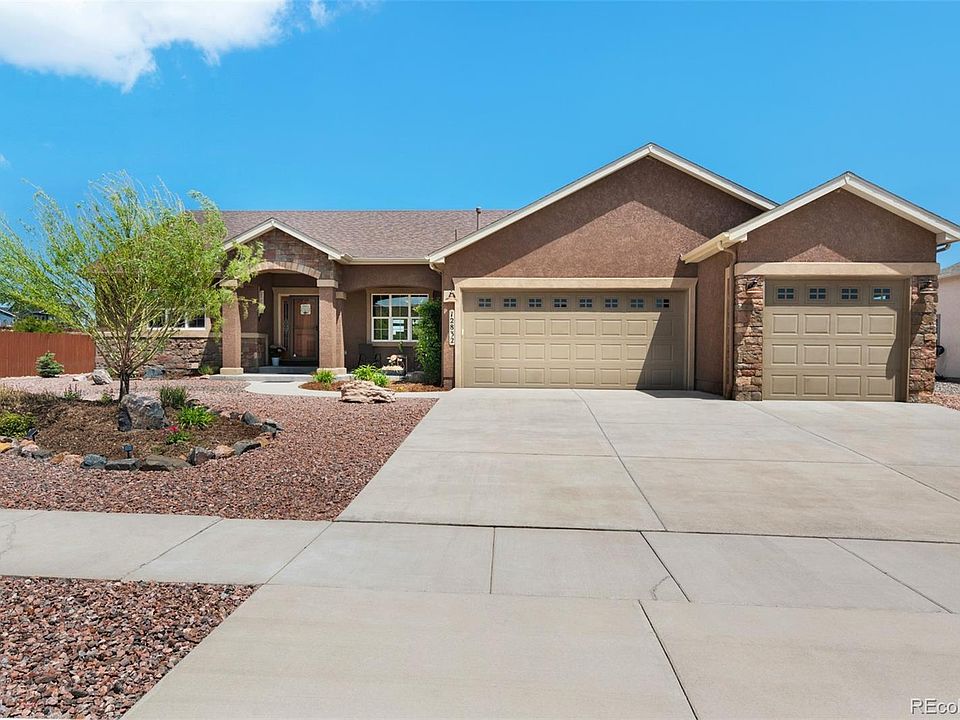 Owner is relocating and looking for a quick sale. The search for your perfect home ends here!This exquisite ranch style home has all the bells and whistles! Conveniently located for quick access to Falcon, Powers corridor, military bases and the growing businesses and attractions that Colorado Springs has to offer, this home close to the end of a quiet cul-de-sac has stunning curb appeal with stucco & stone exterior and gorgeous xeriscape requiring minimal maintenance. You will be amazed with the endless upgrades and stunning additional amenities when you come for a tour! Step inside this open floor plan to find vaulted ceilings throughout and stunning wood-look tile flooring. The gourmet kitchen is truly the heart of the home with island seating, black matte stainless-steel appliances, gas cook top, spacious pantry, and beautiful leathered granite countertops. The dining area is spacious - a perfect spot for gatherings with family & friends! Relax in front of the cozy gas fireplace in the great room or head out back to the covered patio with gas line to bbq. The owner’s suite has direct access to the backyard so you can relax in the hot tub after a long day. Step into the master bath and enjoy a spa like experience with a gorgeous freestanding claw foot copper tub and a walk-through shower - perfect for two! The main level is rounded out with 2 secondary bedrooms, Jack-n-Jill bath, powder room and laundry room. Now head downstairs to find a massive family room that includes wet bar, powder room, 2 more large bedrooms, Jack-n-Jill bath and storage with additional washer & dryer - a perfect setup for those with teenagers or extended house guests. This warm and inviting home really has it all and pride of ownership is obvious in every square inch. Did we mention the 4 car garage? Live and play in a master-planned community boasting a golf course, parks, trails, fabulous Rec Center, miles of open space and a brand new 45,000 square foot field house opening fall of 2025