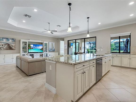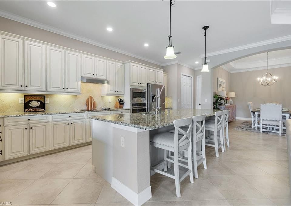 Full Golf Membership Deeded to this home – Luxury Living at Its Finest!!! Discover the perfect blend of elegance, comfort, and resort-style living in this exceptional three-bedroom, two-bath Angelina floor plan, ideally situated on a premium homesite with sweeping views of a shimmering lake, golf course, and a lush private preserve that creates a true sanctuary of peace. This stunning residence offers both privacy and sophistication within one of Southwest Florida’s most sought-after golf communities. Your Full Golf Membership provides exclusive access to two championship golf courses: The Talon, designed by Jack Nicklaus, and The Eagle, crafted by Steve Smyers. Together, they deliver an unparalleled golf experience surrounded by the beauty and tranquility of Twin Eagles. Step inside and experience a light-filled, open-concept layout enhanced by tray and volume ceilings and elegant tile flooring throughout. The home’s tasteful design showcases upgraded hazelnut-glazed cabinetry paired with Sherwin-Williams designer paint finishes, creating a warm and inviting ambiance. The gourmet kitchen features a five-burner cooktop, custom cabinetry, and a spacious layout that seamlessly connects to the great room—perfect for entertaining or relaxing in style. The outdoor living area truly defines Florida lifestyle. Step through wide sliding glass doors to the expansive lanai, complete with a wood-accented ceiling, fully equipped outdoor kitchen with gas grill, and a sparkling pool and spa with heater—ideal for entertaining or enjoying peaceful evenings overlooking the lake and golf course. This meticulously maintained home includes over $100,000 in upgrades, ensuring quality and comfort throughout. Notable features include a whole-house generator, impact-resistant windows and doors, Storm Smart screens on the covered lanai and master bedroom windows, premium homesite, and upgraded flooring throughout. Beyond your home, Twin Eagles offers an unmatched resort-style experience. Residents enjoy 36 holes of championship golf, tennis courts, pickleball, bocce ball, a state-of-the-art fitness center, and a resort-style pool and spa with a lively Tiki bar. Golfers and enthusiasts alike can sharpen their skills on the community’s unique Himalayan putting green, all while surrounded by breathtaking natural scenery and first-class service. Whether you’re hosting guests on your lanai, enjoying a round of golf, or relaxing by the pool, every element of this home and community has been designed to elevate your lifestyle.