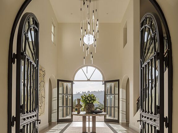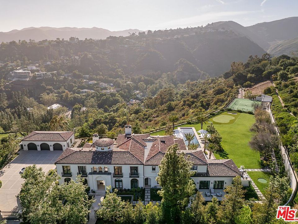 PRICE REDUCTION! $49,500,000. The Westside's most exclusive offering - a rare and exciting opportunity to acquire the only completely redone tennis estate in the ultra-private enclave of Brentwood Country Estates, the guard-gated community of just 13 homes known for its unmatched 24/7 security, privacy and gorgeous views. Gracefully sited on its own five acre promontory, behind its own gates, this truly one of a kind property, completely reimagined and redesigned, is offered fully furnished, ready to welcome you without delay. When you arrive, you are overtaken by a sense of serenity, peace and calm. Taking your first breath of the mountain air, you can feel yourself starting to relax. Where else west of the 405, can you live in your own five star resort and enjoy the low key comforts of home? A "welcome home" lounge area is the first "Oh wow" moment, leading through the property to the many curated outdoor areas, each providing private spaces for different ways to enjoy the ultimate California lifestyle. The gorgeous pool and spa invite you to luxuriate in the afternoon sunshine. Surrounding the pool, the expansive lawn offers a fun putting and chipping green. Beyond through the olive tree lined walkway is a sunken and lit tennis court, easily converted for pickleball and basketball, with a viewing pavilion complete with its own changing room and bath. The property is beautiful during the day, but in the evening it absolutely glows with gorgeous lighting and music everywhere. The approximately 9960 square foot interior is filled with natural light and stylish sophistication. The sightline of the entry hall previews great things to come, and it does not disappoint. The entry leads to the formal living room and expansive dining room, flanked by a beautiful office all with floor to ceiling windows offering views of the perfectly manicured grounds. The heart of the home is the chef's kitchen with a spacious breakfast area with its own big screen TV, temperature controlled wine room, and oversized island, with all the best high end appliances, double Wolf range, double side by side Dacor refrigerators, three sinks, and "they thought of everything" butler's pantry. Right outside the kitchen facing the mountains, through two sets of French doors, the barbecue and outdoor dining areas provide the perfect venue to gather under the stars and watch the moonrise. Adjacent to the kitchen is a fabulous family room, designed for pool, backgammon or just hanging out until dinner is ready. Motorized black-out drapes can convert this space for snuggling up on a comfy sectional to watch your favorite movie. The first level also features a large guest suite, and commodious laundry room with double appliances, a mud room and plenty of storage. On the second level, the dreamy primary suite offers a sanctuary with peaceful views to the sky and mountains, reminiscent of your last great trip to Tuscany or Provence. Tons of mirrored closets and built-ins separate the two sides to the bath area, connected by a distinctive wet room double shower and tub. Three additional ensuite bedrooms provide comfort and privacy for guests or family, and a fully equipped gym completes the upper level. The entire home is powered by a state-of-the-art Crestron smart system, offering seamless control of lighting, music, climate and security with cameras everywhere. In addition to the oversized three car garage, the circular motorcourt is large enough to accommodate ten cars. Located in lower Mandeville Canyon, Brentwood Country Estates, provides easy access to Santa Monica, and other areas of the Westside, with wonderful restaurants, shops, hiking trails, golf and the beach minutes away.