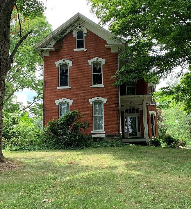 Welcome Home to this 1877 well built all brick Victorian Home only 1 mile from the lake! What a home to entertain in. There are 4 very spacious bedrooms and all rooms have high ceilings. 3 full recently updated baths, one bath needs to have some finished aspects seller does have all the necessary bathroom fixtures. The kitchen is updated with granite counters and natural cherry Craft Maid cabinets, stainless steel appliances, new refrigerator, Kitchen Aid double oven, gas range and dishwasher. The kitchen ceiling is tin. The Living area has a wood burning fireplace, the den is a gas fireplace. The back windows are newer Anderson windows. 200 amp electric. The large basement offers wonderful storage as well as a washer & dryer and also a washer & dryer on the upper level in the spacious laundry area with numerous storage cabinets. Comes with a shed & detached garage along with 3.05 acres. Don't miss out on making this solid built home and all the beautiful intrigant details your own!