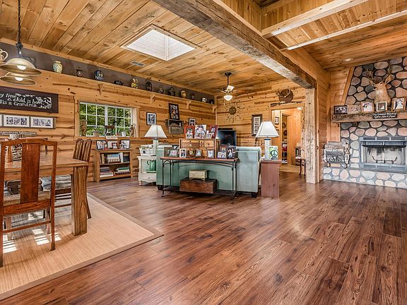 One of the most fabulous and unique properties in the Hocking Hills Region. Modern country vibe in this newer home is comfortable, stylish, and super efficient. Set on 26 private acres, one story main home has 10' ceilings, skylights, stone fireplace, large gathering rooms that keep the coziness of a cabin. The kitchen is designed as a chef/baker's dream-Tons of counter space and cabinet storage. The home was designed by an artist for aesthetics and decor while bringing nature inside with large windows. Private mast suite w/home office/studio area, two full bathrooms, laundry room, reading nooks/shelves. Deck-trellis off kitchen, spot for enjoying outdoors in comfort. Huge main garage, & 2nd shop/garage, separate 2nd cabin, firepit w/large party area, all season room. CITY WATER! see pics!