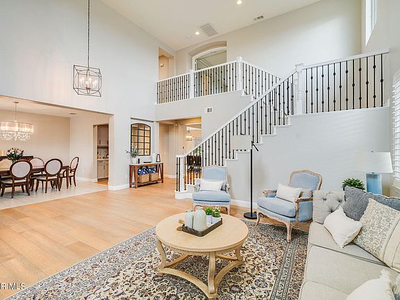 Welcome to your new home! Experience unparalleled luxury within the prestigious Renaissance Summit, a 24-hour guard-gated community in the coveted enclave of Porter Ranch. Positioned at the top of the neighborhood, this residence provides a prime location. This luxury home boasts 5 bedrooms, a large bonus room included and 5 baths. Step into a grand foyer with high ceilings, setting the stage for the opulence that awaits. The large formal living room, graced with french doors and large windows, welcomes natural light to illuminate the space. Enhanced by wide plank wood floors, the main level offers a seamless flow, leading to a recently updated chef's kitchen equipped with top-tier appliances and an abundance of counter space. Entertain effortlessly in the open-concept living areas, accentuated by a cozy fireplace, ideal for gathering. A stunning iron staircase will bring you to the second level, where the lavish primary suite awaits. Unwind in luxury within the spa-like en suite bath, or step onto the private balcony to enjoy panoramic mountain views. This home offers three additional bedrooms, each with its own en suite bath, providing comfort and privacy for family or guests. Outside, indulge in the ultimate outdoor entertainers retreat featuring a meticulously landscaped backyard with a sparkling pool, soothing spa, and built-in BBQ area - perfect for leisurely days or starlit evenings. With its unmatched amenities, flawless design, and breathtaking views, this fully remodeled residence epitomizes the essence of luxury living in Porter Ranch's Renaissance gated community.