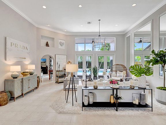 Brand New Roof! Wonderful wide open floor plan with vaulted ceilings throughout for entertaining family & friends. Relax on the sun shelf in your large heated resort style salt system pool with fountains & waterfalls. Formal living & dining rooms are separate from the large open kitchen, great room & breakfast area. All with vaulted 11 & 12ft ceilings. Completely updated interior. Plantation shutters for privacy. Primary suite & 5th bed/office have total privacy from 3 guest suites on opposite side of house. California closets throughout. Pembroke Falls is the perfect family neighborhood with a huge clubhouse, pool & sport courts. Close to the Highway, Whole Foods, Fresh Market, Costco, Target, Lowes & Home Depot
