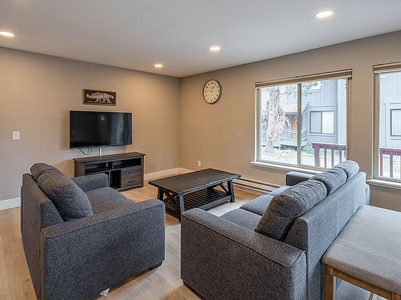 This lovely 4-bedroom, 2-bathroom condo, complete with an attached one-car garage, is situated in the heart of Tahoe Donner. The downstairs area features a kitchen, living room, and dining space, along with a full bathroom and convenient access to the attached garage. Upstairs, you'll find four generously sized bedrooms and a second full bathroom. One of the bedrooms also includes a private deck. This fantastic condo offers easy access to the golf course, The Lodge restaurant, Z's market, and the recreation pools and fitness center.