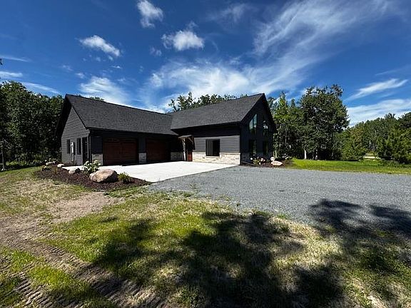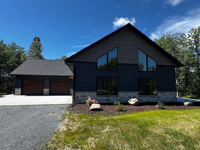 A dream home with exceptional features nestled in the scenic area north of Bemidji, this newly constructed home epitomizes modern living blended with rustic charm. Designed to cater to every need, this residence boasts three spacious bedrooms and two well-appointed bathrooms, offering comfort and luxury in equal measure. This home features expansive 20-foot vaulted ceilings that dominate the living and dining areas. The living area is further accentuated by a corner stone fireplace. There are two distinct living rooms (main floor and loft), providing ample space for relaxation and entertainment. The kitchen stands out with full-height cabinets that offer considerable storage. The large square kitchen island, equipped with cabinets on both sides, provides a perfect spot for meal preparation and casual dining. For those who require a dedicated workspace, the home office space is located off the loft area that is complete with stylish metal railings.