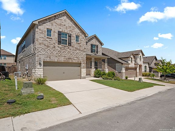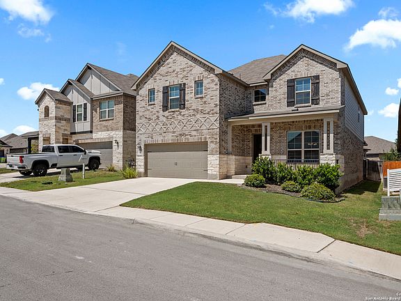 This stunning 5-year-old home offers exceptional curb appeal with a 3-side brick and stone exterior. Inside, you'll find luxury vinyl flooring throughout the main living areas, soaring ceilings up to 20 feet, and upgraded light fixtures. The kitchen is equipped with 42-inch cabinets with crown molding, granite countertops, and built-in stainless-steel appliances. The kitchen island offers additional counter space perfect for hosting guests or family during the holidays. There are 2 dining spaces including a large formal dining and breakfast area. The primary suite is conveniently located on the first floor and is complimented by oversized bay windows perfect for a sitting area. The primary bath includes a walk-in shower, garden tub, dual vanity, and a spacious walk-in closet. Upstairs features a large loft and media room surrounded by three generously sized bedrooms. The backyard includes a covered patio and wide yard, perfect for entertaining. Located in a growing community with no city taxes, residents enjoy amenities such as a pool and playground. Conveniently situated near Loop 1604 and Highway 151.