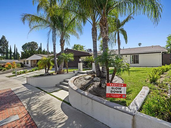 The garage has been converted into an ADU. Welcome to this beautiful 3-bedroom, 2-bathroom home in the desirable north of Rinaldi neighborhood! With an appealing front yard featuring concrete grass pavers, this home offers 2,084 sqft of living space on a spacious 9,500 sqft lot. Inside, you'll find a welcoming entryway leading to a family room and a living room with high ceilings, a cozy fireplace, and built-in speakers for entertainment. The chef's kitchen is equipped with a large center island, quartz countertops, shaker cabinets, and stainless-steel appliances, all opening seamlessly to a dining area. The open living and dining area provide plenty of room for gatherings and entertainment. Outside, you'll discover a private oasis with an above-ground pool, BBQ area, kids' playground, basketball hoop, and more. Conveniently located near the highly sought-after Van Gogh Elementary School and within walking distance to Bee Canyon and O'Melveny Parks. Owner pays for gardener. Renter is responsible for all utilities. Refrigerator and washer/dryer included. Property has solar system.