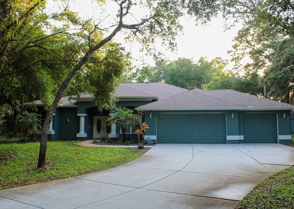 Welcome to your dream Florida oasis! This stunning pool home boasts an expansive open floor plan, perfect for entertaining guests or simply enjoying family time. The beautiful and functional kitchen features upgraded appliances, plenty of prep space, and ample storage. Enjoy casual meals at the breakfast bar or table or host formal dinners in the adjacent dining area. Retreat to the spacious main suite, complete with his and hers walk-in closets, an ensuite bathroom with a jetted tub and private access to the pool area. A split floor plan with two additional bedrooms offers plenty of space for family or guests. As a bonus, the guest bathroom allows access to pool with an exterior door, as well! Outside, paradise awaits in your own backyard oasis. Take a refreshing dip in the sparkling pool, soak up the Florida sunshine on the expansive patio, or dine under the covered lanai. With a sprawling lot, there's plenty of room for gardening, or outdoor activities. In addition to the three-car garage, this amazing property has both his AND her sheds. Both sheds are equipped with electricity. His shed has two stories of storage space and plumbing to the exterior wall, while her shed is insulated and equipped with AC! This home offers the best of Florida living! Don't miss your chance to own this slice of paradise – schedule your private showing today!