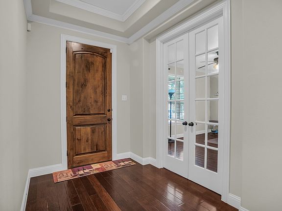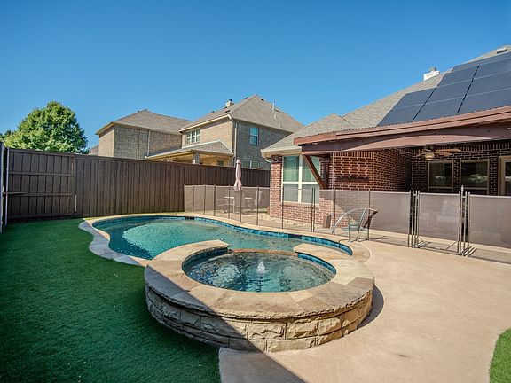 In-ground pool and spaGas burning fireplaceLarge loftOutdoor soffit lightingCovered patioLush artificial turfCrown molding
