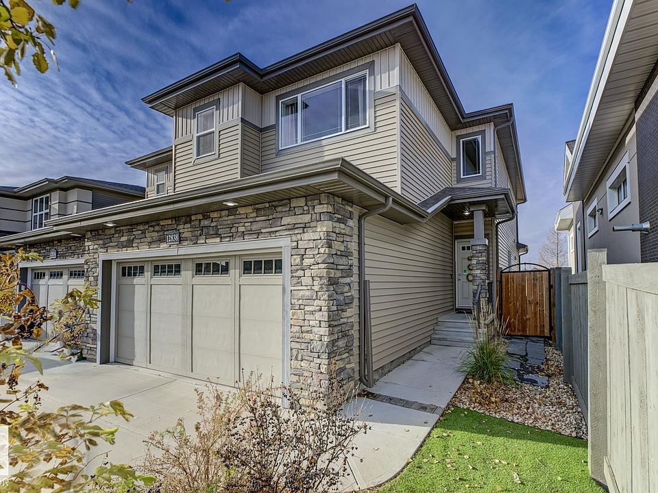 This perfectly maintained Montorio-built home in Trumpeter is the complete package—over 1800 sq ft of stylish living, a beautifully finished basement, and an incredible TRIPLE TANDEM GARAGE! Nestled on a quiet cul-de-sac , BACKING ONTO SCENIC GREENSPACE, it offers sweeping year-round views and a peaceful connection to nature. Inside, enjoy 9-ft ceilings, quartz counters, a corner pantry, under-cabinet lighting, and a welcoming vaulted front entry with built-in bench. Upstairs features a cozy bonus room with a freestanding electric fireplace, laundry, and a gorgeous primary suite with windowed walk-in closet and 5-pc ensuite. The basement is bright and beautifully finished with a family room, 3-pc bath, roughed-in wet bar, and plenty of storage. The sunny southwest yard with low-maintenance artificial turf is perfect for relaxing or entertaining. With A/C, triple garage, and easy Henday access, this home blends comfort, pride of ownership, and unbeatable style!