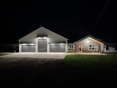 Welcome to the barndominium above all! Where to begin...2 10x16 garage doors and 1 14x10 over head garage, 2000 sq feet of shed space w/loft over looking the pond, 2Ultra high efficient furnaces 98.1. All led lighting throughout, r30 wall insulation, r60 attic, under slab is r15 foam. both kitchens feature reverse osmosis faucets. well is constant pressure variable speed pump. 3 on demand water heaters, water softner, sand filter, all new floor in main house, mud room in garage will be finished, reinforced safe room in garage mechanical room, grass is all brand new w, 70 truck loads of black dirt, grass was pin seeded and hydro seeded. All electrical and natural gas was piped in from wall street.