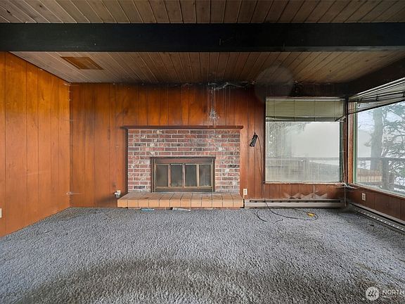 Waterfront opportunity in the Arcadia community with views of Holmes Harbor. This home sits at the end of a long private driveway on nearly a half-acre lot, offering privacy and plenty of potential. The living room features large corner windows that look out over the water and a wood-burning fireplace. A sunroom with sliding doors opens onto a partial wrap-around deck, creating an easy connection to the outdoors. The property needs work and is being sold as-is, making it a great opportunity for investors, remodelers, or buyers looking to create value in a desirable waterfront setting.