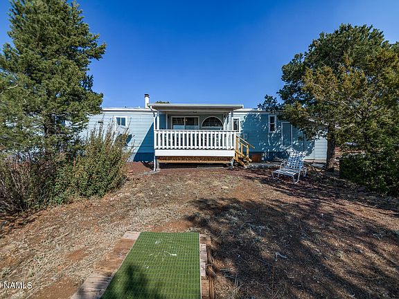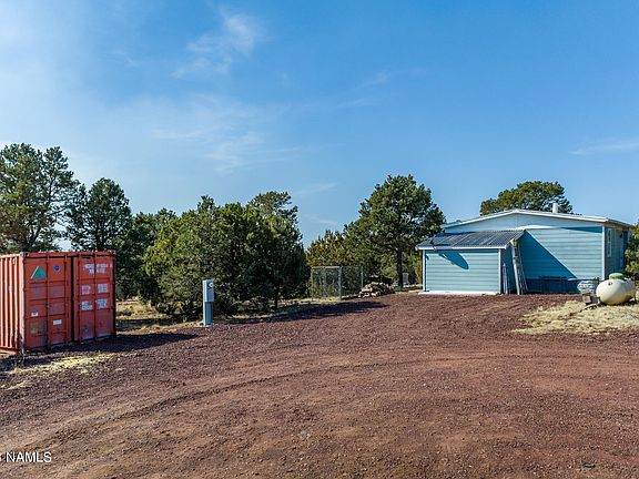 Beautiful 1973 manufractured home, will maintained 3 bedrooms 2 bath this located on 5 acres of heavily treed mixture of pine,juniper and pinons. Very secluded home. Has a galley kitchen, with large wood burning stove and propane heater, living room split floor plan, laundry in separate room. Separate dining area looks out to the woods. This is a unique find but due to age of home cash deal only. All offers considered. Includes 40ft Conex Storage container and is fully fenced. A gem in the making come see. Cat in home do not let out.