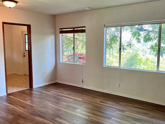 Studio guest house at the top of Montecito Heights with stunning views of Debs Park and beyond. 525 sq ft house with large outdoor space. Large yard includes private view patio in the back of the house, space in the front of the house, and room for gardening. Full kitchen with refrigerator. Freshly painted throughout with newer kitchen and bathroom flooring. Air conditioning. Biweekly yard service. Ample street parking. Enjoy nature with walking access to Debs Park and Flat Top. No smoking. One small dog considered.