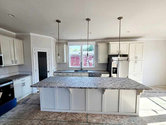 This BRAND NEW spacious three bedroom two bath just arrived. It is the largest of the three bedrooms we have on site. The large bedrooms and expansive kitchen Island have made this one a favorite. Kitchen has stainless appliances and a Single cell farmhouse style sink. Primary bedroom has a walk in closet and private en suite bath with dual vanities and double sets of matching cabinets for additional storage.