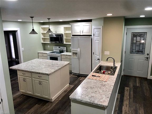 This beautiful split level Howland home is available for immediate possession! Meticulous landscaping and new concrete driveway greet you with ample room for parking with pull off. Youâll have generous space for entertaining in the open concept kitchen, dining and living rooms, all featuring Lifeproof Luxury Vinyl Plank flooring! The kitchen also showcases newly remodeled Kraftmaid Cabinets, a large island with breakfast bar and appliances. Enjoy the natural light of the long days of summer in the 4 season sunroom that also features a beautiful stone fireplace to cozy up near in the winter. The upper level offers 3 bedrooms with a full bath. The lower level has a spacious finished family room that can easily convert to a home office, exercise room, or 4th bedroom with new glass block windows and a brand new full bath with walk-in tiled shower! Enjoy the privacy of the large fenced in backyard with concrete patio, perfect for outdoor entertaining, kids, and pets. One year home warranty offered for your worry free purchase! Updates: roof (2012), windows, doors, gutters, garage/opener (2017), hot water tank (2013), carpet (2020).
