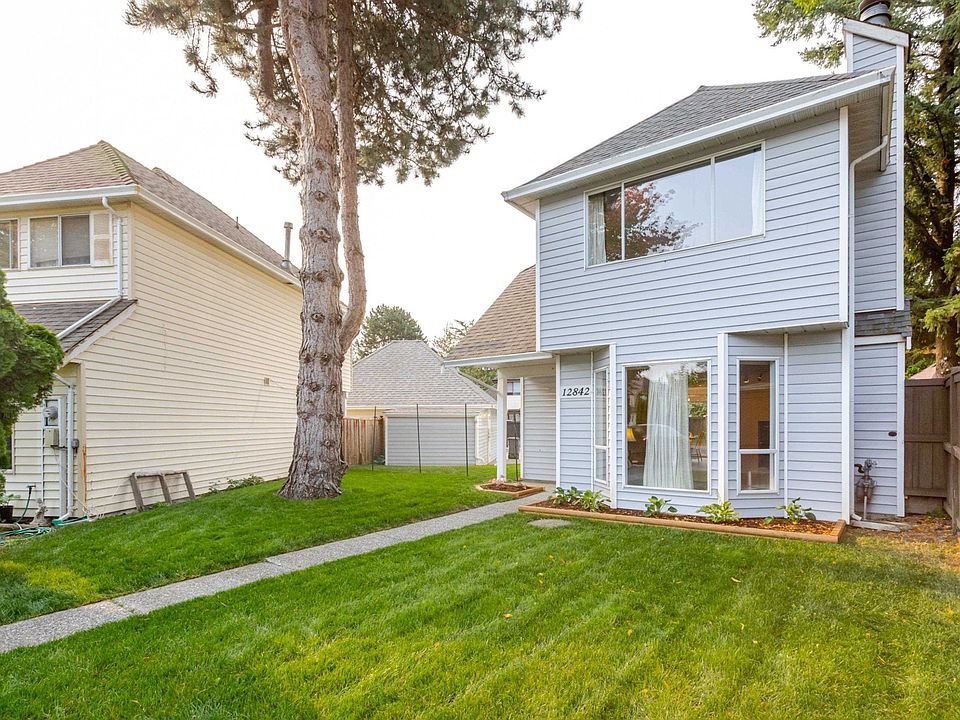The wait is over for your prime GREENBELT location home in Parkwood Village. This original owner home comes with UPDATED FURNACE and hot water heater along with detached single garage and lane access parking. You will love the king-sized primary bedroom (14'7 x 12'6) that comes with a FOUR PIECE ENSUITE and tons of closet space. The main floor layout is open with a large kitchen/eating area and a living room & dining room combo. Check out the NEW WIDE PLANK LAMINATE flooring throughout the main floor. Freshly painted. Neighbourhood kids park, Sinclair Elementary School and Newton Athletic Park are just steps away. This cul-de-sac location is a quiet enclave of well maintained homes.