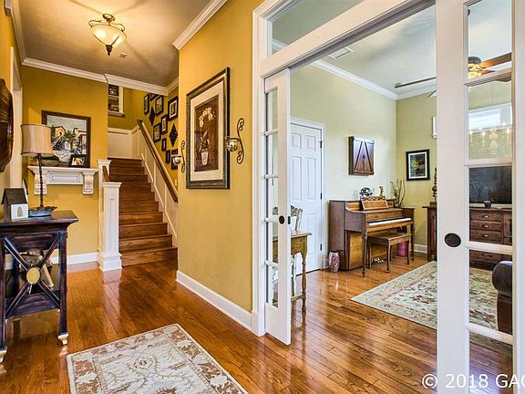 Classic & Traditional! 4 bedroom, 3 bath, +Study/Den/Flex Room. Overlooking mature and beautiful "Jasmine Garden" Pergola area at the front of the house. Wonderful place to gather with your neighbors for any occasion. This home has all the beautiful "Pridgen Homes" quality features that pay attention to detail. Recently updated along with closets by "A Divine Closet" that will knock your socks off! All new carpet, 2 new HVAC units in 2016 & 2017, extensive outdoor light package, premium sound system; new exterior paint in 2014. Exceptional and very private rear, completely fence yard with a lovely outdoor living space to gather & spend time with family and friends. This well-planned space has lush landscaping and paved walkways. Just a short stroll to the pool & all of the other community amenities: playground, park green spaces, tennis, volleyball & basketball courts, and community school bus stop. Also, mere walking distance to the Tioga Town Center shopping, restaurants, and the world class ranked Gainesville Health and Fitness! A wonderful home and a delightful setting!