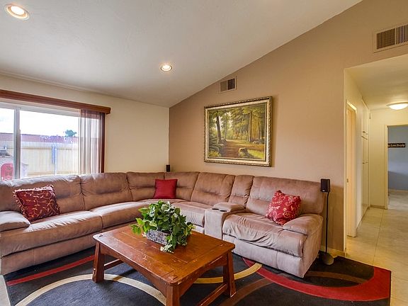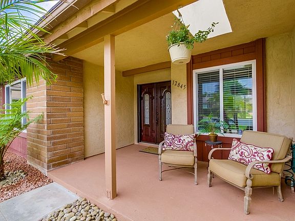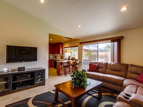 Charming 3 BR house in Poway Unified School District features a community pool and equestrian trails. The family friendly home features vaulted ceiling, travertine floors throughout, updated kitchen, remodeled bathrooms with travertine tub/shower surrounds, granite countertop in master bath, new front door and windows, and slate embellished fireplace. The large backyard features synthetic turf, four hearty fruit trees, a storage shed and newer fence. No mello roos!