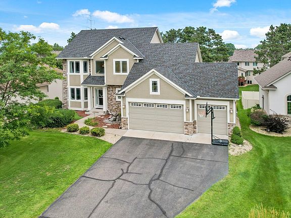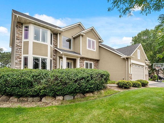 Welcome to this beautifully maintained and amazing executive home designed for entertaining w/ upgrades at every turn. You will find your guests in awe with custom finiehes and cabinets, recently upgraded kitchen, under cabinet lighting, knock down vaulted ceilings, granite tops throughout, tray ceiling in the owners suite. 4 generous bedrooms upstairs, full bath up, the owner's ensuite with pvt bath & 2 sinks, sep shower and tub and tankless H20 heater serving them all. Entertainers dream lower level with cust cabinets and built ins, BR #5, dry bar, exercise room, crown molding and cherry trim all leading to your walk out basement allowing access to your golf course like landscaping all meant to be taken in from your maintenance free deck. All this in combination with your cul de sac lot in Wexford, Coon Rapids most sought after development providing walking trails leading into Bunker Hills Park a 1600 acre place for all incl golf, dining, horse riding, water park and so much more.