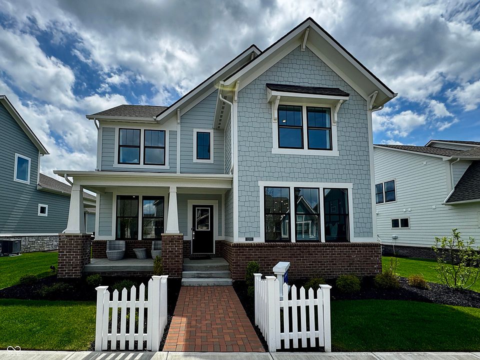 Set in the heart of sought-after Chatham Hills, this former model home showcases the perfect blend of refined design, thoughtful upgrades, and timeless appeal in one of Westfield's most coveted communities. From the moment you step inside, custom lighting and curated details set the tone for a home that's anything but ordinary. Just off the entry, a dedicated study features a wallpaper accent wall-perfect for working from home, getting creative, or simply enjoying a quiet retreat. Across the hall, the spacious main-level Owner's Suite offers a true retreat, complete with a tray ceiling, decorative chandelier, private ensuite bath, and a smartly designed walk-in closet. The heart of the home features a chef's kitchen with stacked glass cabinets, a large island that invites connection, and an adjoining Great Room with one of two fireplaces. Step out to the covered rear patio, where a second brick fireplace creates the perfect backdrop for cozy evenings or weekend get-togethers. Upstairs, the versatile loft offers even more room to live, work, or play, surrounded by two secondary bedrooms, each with unique designer touches. The finished basement is a showstopper of its own-with a spacious entertainment area, built-in cabinetry, accent paint & wood accent details, and an additional bedroom and full bath perfect for guests or extended stays. Additional model upgrades include designer lighting throughout, a custom built-in mudroom bench, alarm system, irrigation, and premium landscaping that all add to the move-in-ready appeal. Located in Chatham Village at Chatham Hills, residents enjoy a tree-lined, front-porch lifestyle with exclusive Sport & Social Membership to The Club at Chatham Hills. Amenities include golf, fitness, indoor/outdoor pools, on-site dining, lakes, trails, and more. Plus, you're minutes from Westfield's best parks, restaurants, and the Monon Trail-served by top-rated Westfield-Washington schools. A must-see!