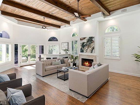 Fully remodeled, Custom North Ranch estate on an approximately ½ acre corner lot featuring an infinity edge pool, downstairs bedroom with full en-suite bathroom with separate door to the backyard, and tons of space to entertain. Kitchen has brand new marble counter tops and back splash, a new double Viking oven, Sub-Zero refrigerator, Wolf Range, farm sink, and Italian Chandelier. The entire home has custom ¾ inch hardwood maple floors, a new multi-zoned HVAC system, and recessed lighting. All full bathrooms have been recently remodeled with marble showers and counter tops, custom-built shower doors, and new lighting fixtures. Outdoor is an entertainers paradise including an infinity edge pool and jacuzzi with brand new Pebble Tec, new pool equipment, built-in barbeque with 42” Viking range, custom-built fire pit, newer landscape lighting, new drip system on all landscaping, and new drainage throughout. 3 car attached garage with Swisstrax flooring and ample room for storage. Virtually across the street from shops and restaurants and in close vicinity to the 101 and 23 freeways. Part of the award-winning Conejo Valley Unified School District. Don’t miss this unique opportunity; this home is meticulously maintained and it's the first time its been on the market in 29 years.