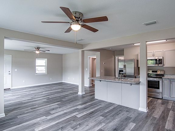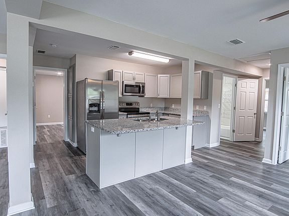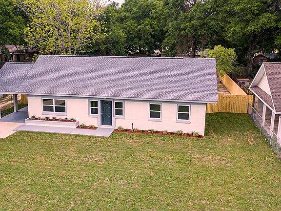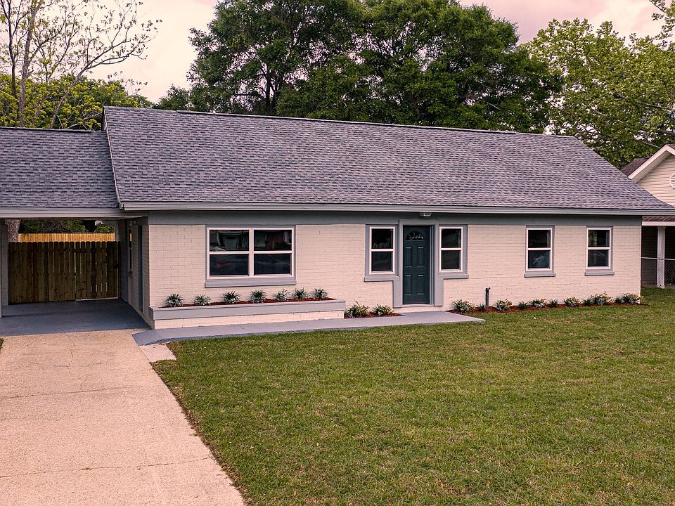 GORGEOUS AND COMPLETELY RENOVATED! Amazing updates and attention to detail throughout this completely redesigned home which now features 3 bedrooms, 2 full bathrooms and additional square footage added to its original floor plan. You'll love the LUXURY upgrades! Sitting on a -1/4 acre it has all new electrical wiring, panel boxes and lighting, all new plumbing, HVAC and brand new roof; beautiful wood-look plank flooring and ceiling fans throughout; new energy efficient windows; HUGE open living/kitchen/dining area; the kitchen has been impeccably updated with beautiful gray cabinetry and luxurious granite counter tops featuring a large breakfast bar and brand new stainless appliances. The hall bath is a fantastic updgrade featuring double sink vanity, gorgeous tile surround tub and open linen shelving. The large, newly designed master bedroom with contemporary barn doors, includes a spectacular master bath suite featuring an elegant glass surround tiled shower, two vanities and walk-in closet. The lush, newly sodded front yard, large fully privacy fenced backyard and fantastic oversized covered patio round out the transformation of this awesome home. Come see all of the amazing features!!