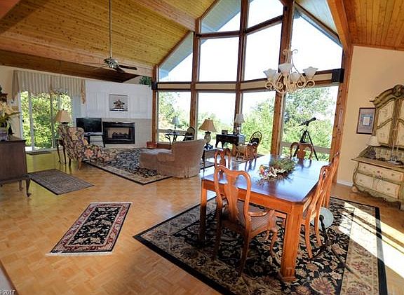 Whether you are looking for a vacation getaway, or a permanent residence, look no further! This Lindal Post and Beam Cedar Home has soaring Cedar ceilings, open floor plan and a WALL of windows to soak up the panoramic long range Mountain View!! Choose from 2 master bedrooms with en-suite baths OR choose the lower level bonus room with long range mountain views, den, and office with walk-in cedar closet! Lower level has full bath with walk-in shower as well as covered patio with VIEWS! Laundry and single car Garage on lower level. Main level boasts open floor plan, sunroom surrounded by windows and those breathtaking, sweeping, mountain views! Expansive kitchen with granite counters, island and breakfast bar is perfect for entertaining guests! Several varieties of fruit trees and bushes! Gated community with 2 lakes, one for fishing, one for swimming! Bring your canoe! Club house and tennis court as well!
