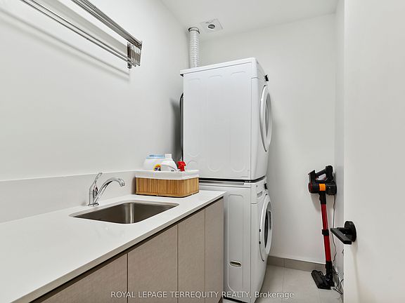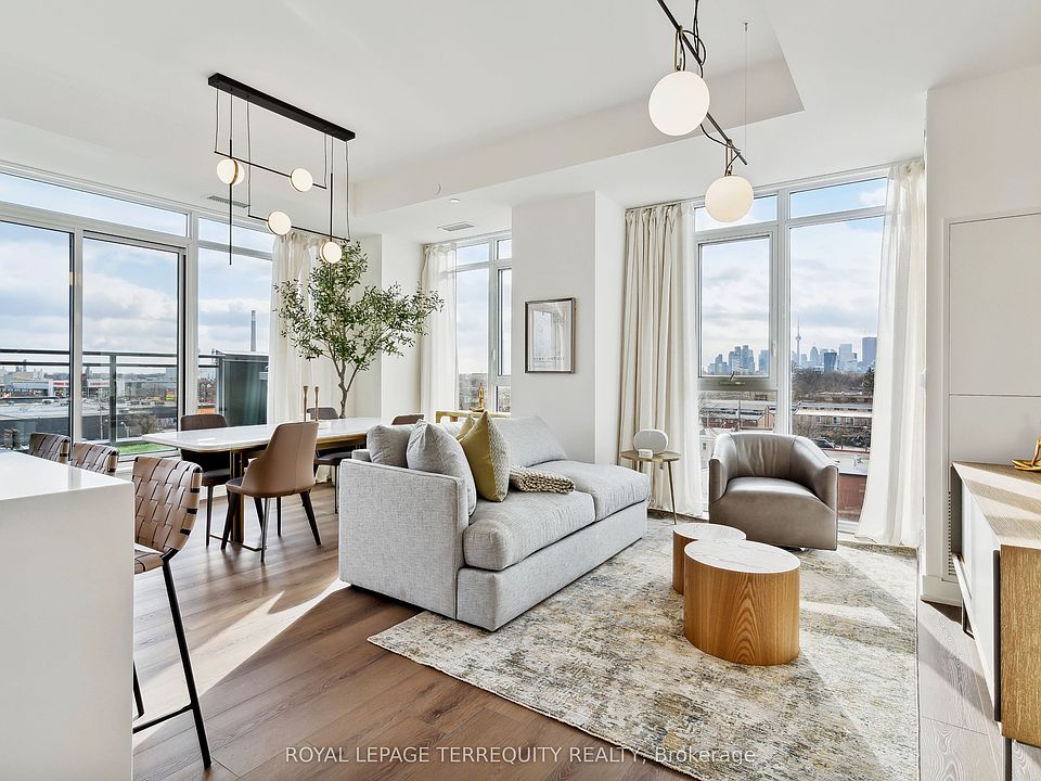 Welcome to an extraordinary top-floor residence in one of Leslieville's most sought-after boutique buildings.Designed for those who value privacy, elevated design, & effortless city living,this penthouse suite delivers a level of refinement rarely offered in the neighbourhood.Flooded w/natural light from floor-to-ceiling windows,the open-concept living space frames sweeping views of the Toronto skyline & Lake Ontario.Sunsets here feel cinematic. Every detail has been carefully curated: bleached wide-plank oak floors,custom lighting,modern minimalist millwork, & striking architectural wall accents create a calm, cohesive aesthetic throughout.The chef-inspired kitchen is both functional & beautiful,featuring an oversized island, sleek integrated appliances,generous pantry storage, & plenty of space to entertain.All three bedrooms are impressively sized w/large closets, offering comfort & flexibility for families & guests,.The third bedroom,enclosed w/elegant glass doors, currently serves as a stylish office & can easily be converted as your lifestyle evolves.Step outside to the showpiece of the home: an expansive private terrace overlooking the city & lake. Outfitted w/a built-in BBQ, premium turf flooring, & room for lounging or dining, this outdoor sanctuary is ideal for slow mornings & golden hour cocktails,Additional standout features incl. a spacious laundry room w/deep sink, quartz counters, & hanging system.This is something rarely seen in condo living.With fewer than 70 residences,this boutique building offers true exclusivity & peace.Residents enjoy access to a private fitness studio,rooftop terrace,& a beautifully designed party lounge.A rare private parking space adds everyday convenience,while direct access to the Queen streetcar,DVP, & Gardiner ensures effortless commuting in every direction.This is more than a place to live.It's an elevated lifestyle in one of Toronto's most vibrant & lovable Opportunities like this are few and far between communities.