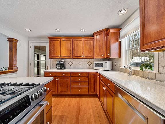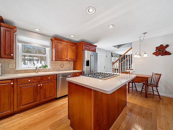 Incredible opportunity awaits with this hidden GEM, cherished by the same family for over 43 years. This bright and airy home has been completely renovated, showing a beautiful eat-in kitchen featuring cherry cabinetry and Corian countertops, an island that combines a gas cooktop with an electric oven, and top-of-the-line BOSCH stainless steel appliances. The first floor also includes a bedroom with a full bath, currently used as a dining room by the present owners. On the second floor, you'll find three spacious bedrooms, a ¾ bath, and laundry. The front-to-back living room is enhanced by a gas stove that adds warmth and ambiance during chilly winter days, with sliding doors that lead to a maintenance-free deck overlooking a serene backyard. Meticulously planned, the yard is plentiful with numerous perennial gardens, along with blueberry bushes, rhubarb plants, and wild raspberries. Enjoy the sights and sounds of nature as you watch birds, monarch butterflies, hummingbirds, and bumblebees from either of the two maintenance-free decks or the three-season porch. Situated on over an acre of land, this well-cared-for home is conveniently located near Routes 101 and 93, as well as hospitals, shopping centers, and schools. Open House Sunday, February 23, from 12-2 PM. Offer deadline Tuesday, 2/25 at 5PM