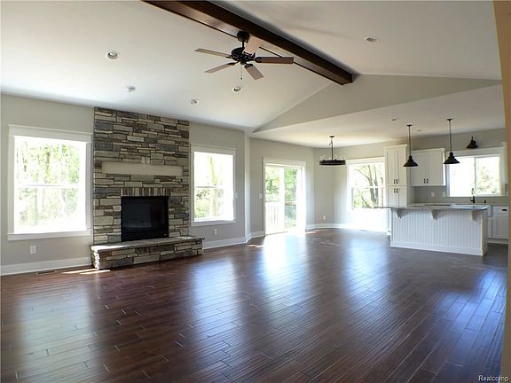 Nothing Beats New Construction~~Custom Ranch Home Situated on a Level Half Acre within the peaceful Shadowlands Development~~Quality Craftmanship, Materials & Finishes~~Volume Ceilings~~Engineered Wood Flooring Transitions the Foyer, Kitchen & Dining~~Stylish Kitchen w/ Granite, Maple Chiffon Cabinetry & Snack Bar Opens to a Spacious Dining Area with Bright Sliding Door to Rear yard~~Entertain or Relax in the Cathedral Great Rm Warmed by a Fireplace with Ledge Stone Surround~~Retire to 1 of 3 Bedrooms including a Master Suite w/ 10' Tray Ceiling & Private Bath Featuring Tiled Shower & Granite Vanity~~Ceramic Tile 1/2 Bath, Main Full Bath & 1st Floor Laundry~~Full Egress Daylight Basement offers Potential for an additional 1750 Sq Ft of Living Space~~Extra Deep 2 Car Garage~~Energy Efficient 2x6 Construction~~Natural Gas~~Hartland Schools~~Min to Shopping, Restaurants, Schools & US-23~~Construction has Started w/ an Approximate Completion Time by October~~