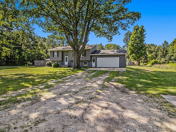 Situated on 10 peaceful acres in Rothbury, this 4 bedroom, 1.5 bathroom bi-level home offers a comfortable rural lifestyle. The home features a privacy-fenced backyard, a greenhouse, and a barn, perfect for those looking for extra space and potential. Recent updates, including fresh paint and some new flooring, have been completed, with room for your finishing touches to make it truly yours. The property also includes an attached two-car garage for added convenience. Set back from the road in a quiet, natural setting, this home is ready for you to move in and enjoy the space and tranquility. Contingent on seller finding suitable housing.