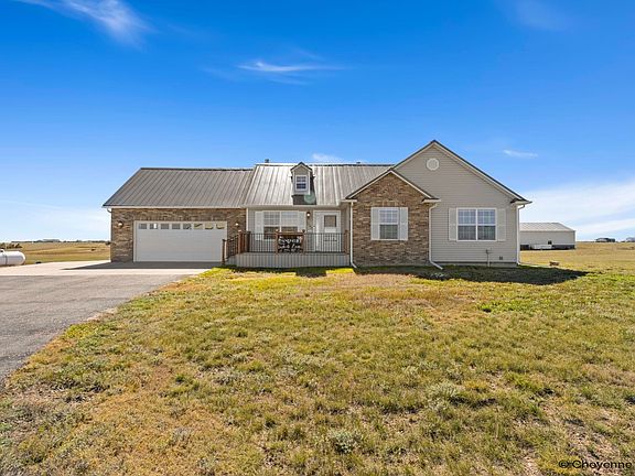 Rural property situated on 8.5 acres in the desirable Triple Crown Estates, this home offers space, comfort, and breathtaking views. Horses are welcome here, with plenty of room to roam and graze. This spacious 5-bedroom, 3-bathroom home features vaulted ceilings, a cozy gas fireplace, and stunning sunsets that paint the horizon each evening. The interior has been freshly painted and thoughtfully updated with new lighting throughout, creating a bright and inviting atmosphere. The kitchen boasts a brand-new stove, and a new AC unit that keeps you cool on those hot summer days. Outside, you’ll find an insulated 30x40 outbuilding with concrete floors, and electricity—perfect for a workshop, storage, or hobby space. Additional highlights include a 2-car attached garage, utility shed, and RV parking for all your recreational needs. Experience the peace of rural life with modern amenities just a short drive from town. Come enjoy the wide-open spaces and make this Wyoming retreat your own!