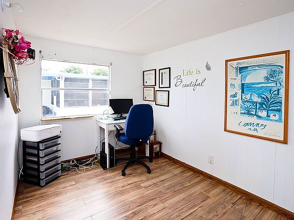**HOME IS IN LAND LEASE COMMUNITY. NO REALTORS PLEASE.** -------------------------------------------------------------------------------------------------------- "Goldenglow Bungalow" is a darling little starter home that absolutely exudes understated charm. This tiny gem located in the beautiful community of Paradise Village, is wonderfully affordable little sanctuary, yet offering everything a couple or small family needs for comfort and convenience. It's location near the community clubhouse and amenities is great for young swimmers and athletes. Come home from work and enjoy a game of tennis, or a quick swim, before dinner. Upon approaching "Goldenglow Bungalow" you will immediately notice an oversized screened-in room, providing an idyllic space for dinners al fresco or simply a shady place to relax and enjoy a good book, a glass of wine, or a morning yoga session and coffee. Step inside to a charming living area with a flexible bonus room on the other side of a partition that can serve as a home office, den or guest room. The living room, dining area and kitchen are configured in a popular open concept layout. A beautiful sliding glass door and miniblind treated windows invite ample natural light to dance through the space. The kitchen has been renovated and features beautiful flooring, gleaming stainless steel appliances and modern shaker cabinetry. A ceiling fan circulates a gentle breeze while lending an air of casual charm to the space. Two cozy light-filled bedrooms provide a soothing sanctuary and place to retreat for quiet privacy when needed. The master bedroom features an en suite bath with a lovely new vanity. From a practical standpoint, this home features a newer (5-year-old) roof and newer (3-year-old) AC. Finally, like all homes in this lovely lakeside community, you will enjoy central air and heat, off-street covered parking, your own outdoor storage shed, professional landscaping and sprinkler system, and access to the community's extensive recreational amenities including heated pool complex, gym, sauna, tennis, basketball, library, clubhouse, lake recreation and more. To schedule a tour of this lovely home, call (954) 871-2134. Ask for "Goldenglow Bungalow", #5E-PL. PRICE IS FIRM **HOME IS IN LAND LEASE COMMUNITY. NO REALTORS PLEASE.**