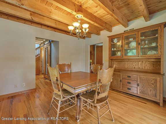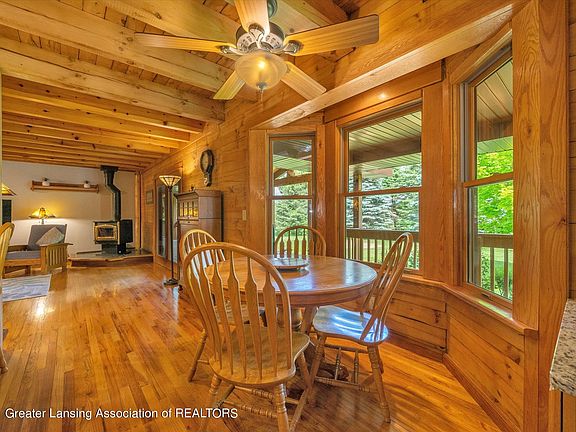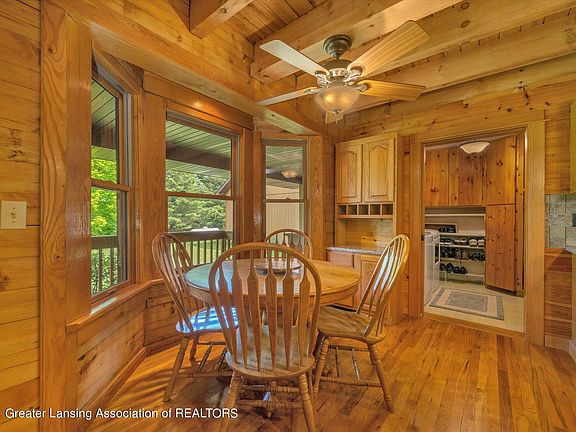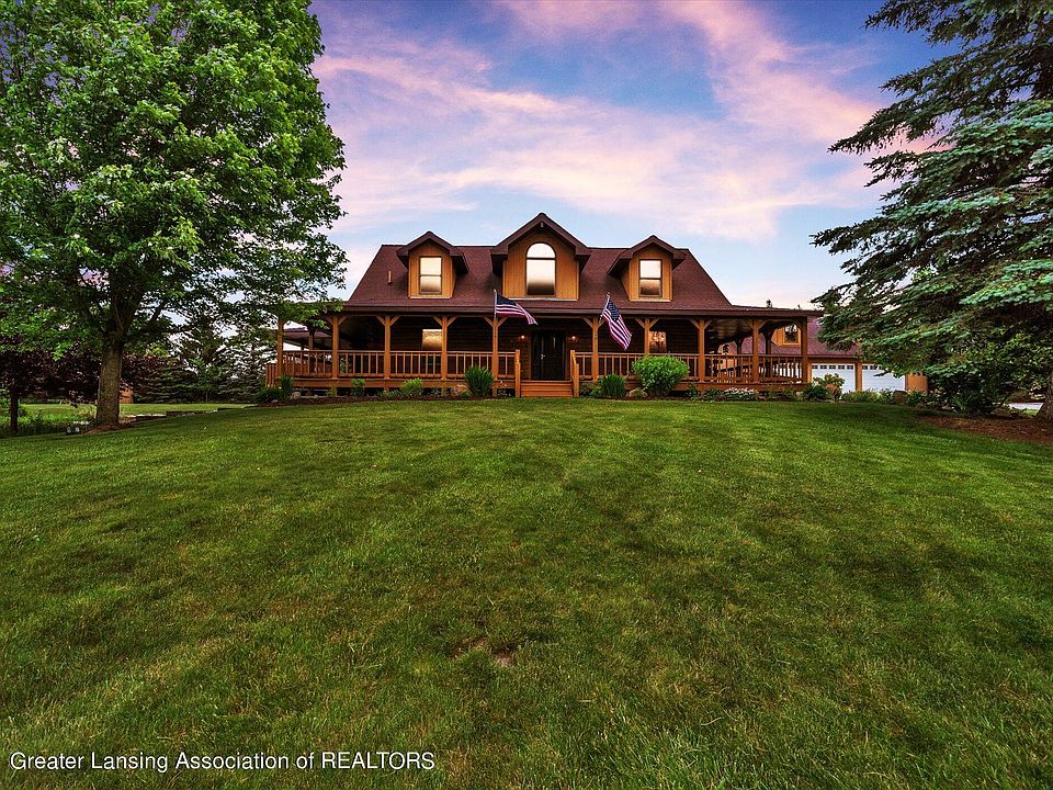 Wow! Immaculate log home featuring 4 beds & 2.5 baths with over 3800 finished sq ft on 2.5 picturesque acres! As you pull up the drive you will be impressed by the expansive wrap around porch with over 1500 sq ft of decking! Entering the front door, you will see no detail has been overlooked. The spacious living room features a wood stove, beamed ceiling and slider to the back porch. The kitchen boasts granite countertops, tile backsplash, pantry and eat-up breakfast bar with room for a kitchen table & chairs plus easy access to the separate formal dining room. On the north end of the house is the expansive first-floor master suite with private porch access, walk-in closet and a huge soaking tub with separate step-in shower. The second level hosts two large bedrooms and a separate separate family/game room area with cathedral ceiling and large palladian window overlooking the backyard. The finished lower level houses another rec room, the 4th bedroom and large workshop for all of your woodworking projects. Home has a generator hook-up and large detached garage with 220V available. Don't miss this spectacular home and schedule your showing today!
