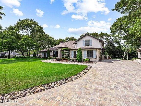 French Country designed home full of charm and elegance. You are first greeted with a handcrafted iron door with stone archway making a dramatic and inviting first impression. The combination of the rich, textured iron with the natural, earthy stone sets the tone for the French Country aesthetic. From the moment you enter, floor-to-ceiling travertine columns set a tone of timeless elegance, gracefully defining the formal living and dining areas. The spacious gathering room rises with soaring ceilings, a perfect blend of grandeur and comfort. At its heart, a striking woodburning fireplace—clad in travertine from floor to ceiling—anchors the space with warmth and texture. Custom cabinetry, crafted with exquisite detail, frames the hearth while expansive windows bathe the room in natural light, blurring the line between indoors and out. Designed for both intimate evenings and grand celebrations, this home offers sophistication without sacrifice to livability. Beyond the gathering room, double doors open to an expansive outdoor living area with a vaulted tongue-and-groove ceiling and dual operable skylights that flood the space with light. Ready for entertaining, this space is pre-plumbed with gas, electricity, and ventilation perfect for designing your dream summer kitchen. Beyond the covered retreat, a pavered patio extends the living space beneath open skies. Centered around a welcoming firepit and framed by lush, mature foliage, this private outdoor sanctuary offers both seclusion and a perfect setting for evening gatherings.