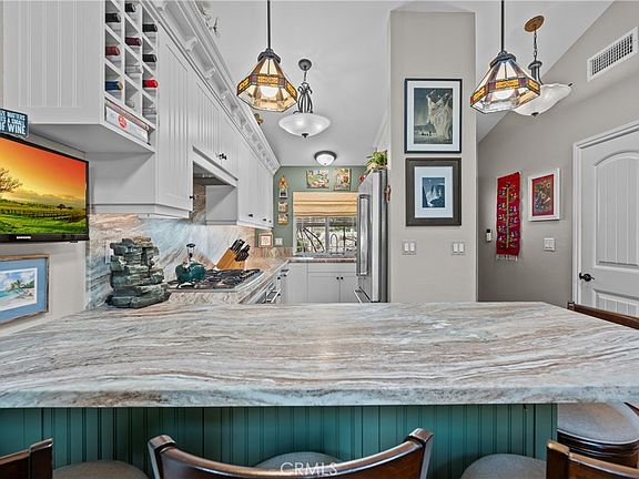 One of a kind, stunning, villa in the Oaks North 55+ active adult community. This home has been renovated and remodeled with taste, quality and functionality. Every inch is used efficiently with elegance. The villa lives larger than the inside space with a generous private front courtyard and intimate back terrace with a view to the hills with pavers. The north/south orientation of the home makes the outside spaces perfect for those outside entertaining and dining experiences without the hot sun beating down late in the day. Perfect for drinks on the terrace and dinner in the courtyard!
