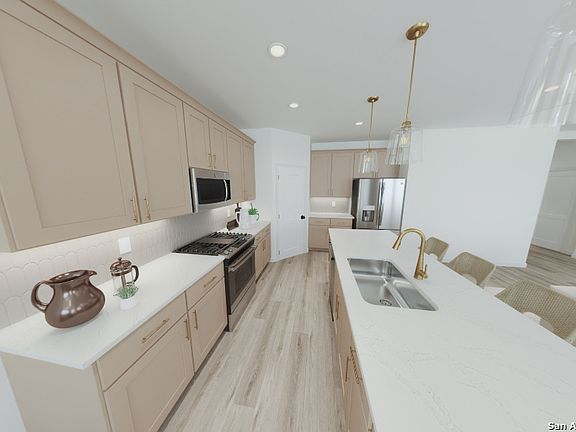 This beautiful two-story home combines thoughtful design with flexible living spaces to suit a variety of lifestyles. At the heart of the home is a gourmet kitchen featuring a spacious center island and a walk-in pantry, creating the perfect setting for meal prep, casual dining, or entertaining. The kitchen opens seamlessly to the family room and breakfast area, making it easy to stay connected whether you are hosting friends or enjoying a quiet night in. The family room is filled with natural light from three large windows that overlook the backyard, creating a bright and inviting atmosphere. Just off the foyer, a private study provides the ideal space for working from home, pursuing hobbies, or creating a quiet reading nook. The study can also be converted into a downstairs secondary bedroom and bathroom for added flexibility. In addition, the downstairs living room can be optioned as a second study, giving you even more ways to tailor the home to your needs. Upstairs, the primary suite offers a private retreat complete with a well-appointed bath and a spacious walk-in closet. A large loft provides extra space for a game room, media area, or secondary living zone. Three secondary bedrooms and a shared bathroom are also located upstairs, offering plenty of room for family and guests. The three-car tandem garage provides generous storage and parking space, with the tandem bay available as an option for a media room. This home is part of our Serene Collection-designed to bring balance, calm, and open space into everyday life. Muted earth tones and natural textures work together to create rooms that breathe and moments that linger. Serene is about slowing down, soaking in the quiet, and making space for what truly matters, one peaceful moment at a time. This home is located in Saddlebrook Ranch, a master-planned community in the charming city of Schertz-named one of CNN/Money's top small towns. Enjoy easy access to I-35, premier shopping, dining, and Randolph Air Force Base. Planned amenities include a sparkling pool and playground, perfect for family fun. With the highly regarded Schertz-Cibolo-Universal City School District nearby, Saddlebrook Ranch offers the ideal blend of community, convenience, and small-town charm.